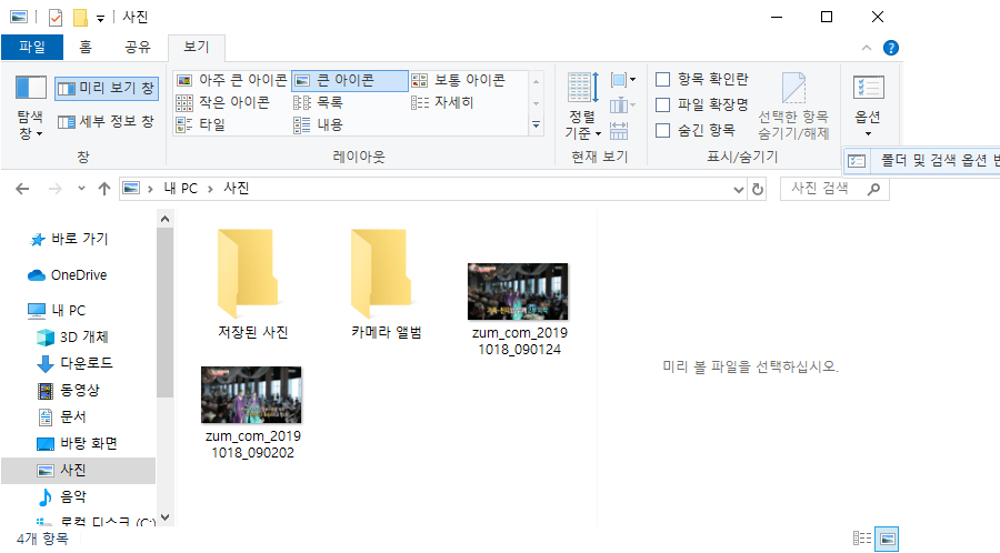 먼저 파일탐색기에 들어가서 보기 탭을 클릭합니다.