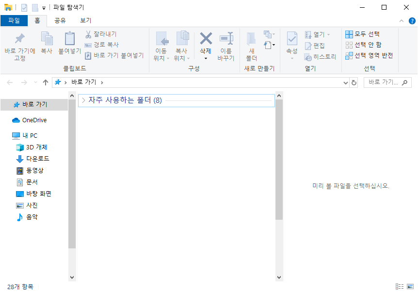 자주 사용하는 폴더와 함께 최근에 사용한 파일 항목들이 보입니다.