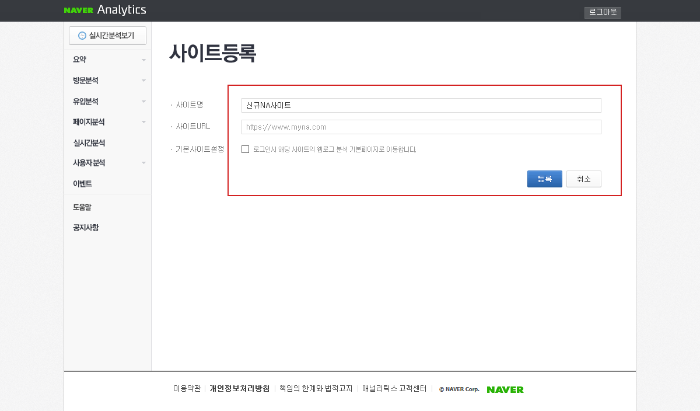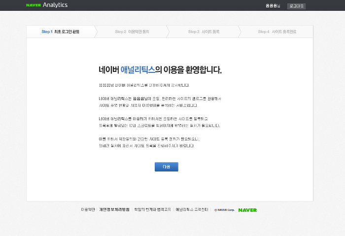 네이버애널리틱스 사이트에서 회원가입을 합니다.