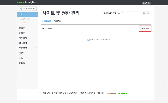 내 사이트를 등록해주어야지 통계가 나타나겠지요?