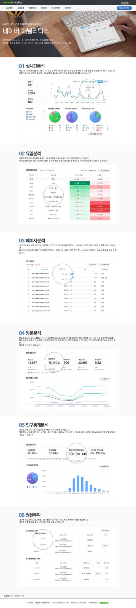 위의 여섯 가지가 네이버애널리틱스 주요 기능입니다.